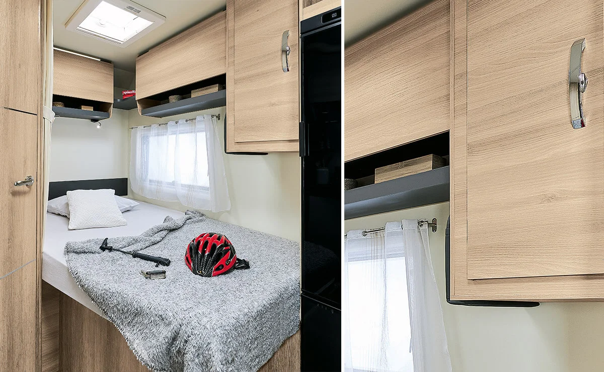 Tekintse meg részletesen az Itineo Cozi PF 600-at! Tökéletes kényelmes utazásokra, éjjel akár 4 fő elszállásolására is alkalmas. Élvezze a funkcionális lakóteret állítható magasságú ülőhelyekkel és választható alvási lehetőségekkel. Ez a modell tágas tárolóhellyel, nagy hűtőszekrénnyel és megfelelő méretű ruhásszekrénnyel rendelkezik – az Ön igényeinek megfelelően.