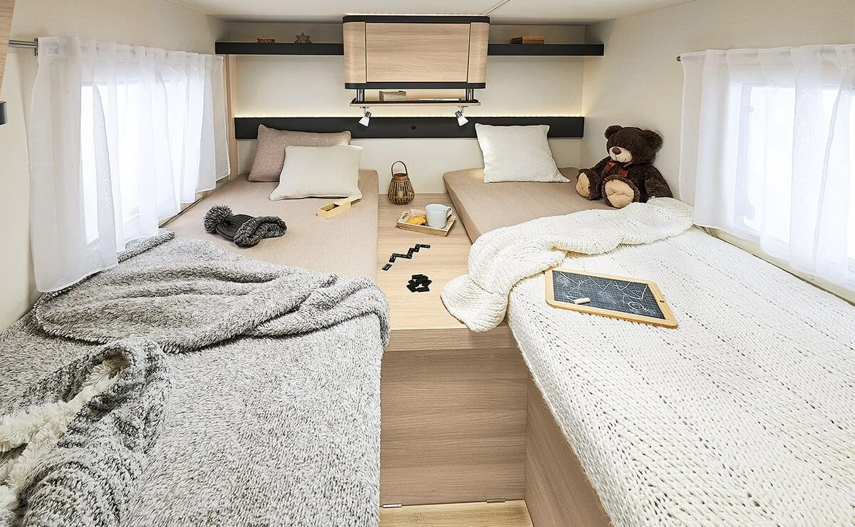Bemutatjuk Önnek az Itineo CJ 660-at – ez egy teljesen integrált ház kerekeken! A DUO’SPACE-sszel és forgó fallal rendelkező fürdőszoba növeli a térérzetet. Élvezze a békés éjszakákat az egyszemélyes ágyakon (80 х 210/190 cm + 80 х 200 cm) és a kiterjesztett, 150 x 202 cm méretű, pároknak szóló franciaágyon. További információért az Itineo CJ 660-nal kapcsolatban lépjen kapcsolatba velünk!